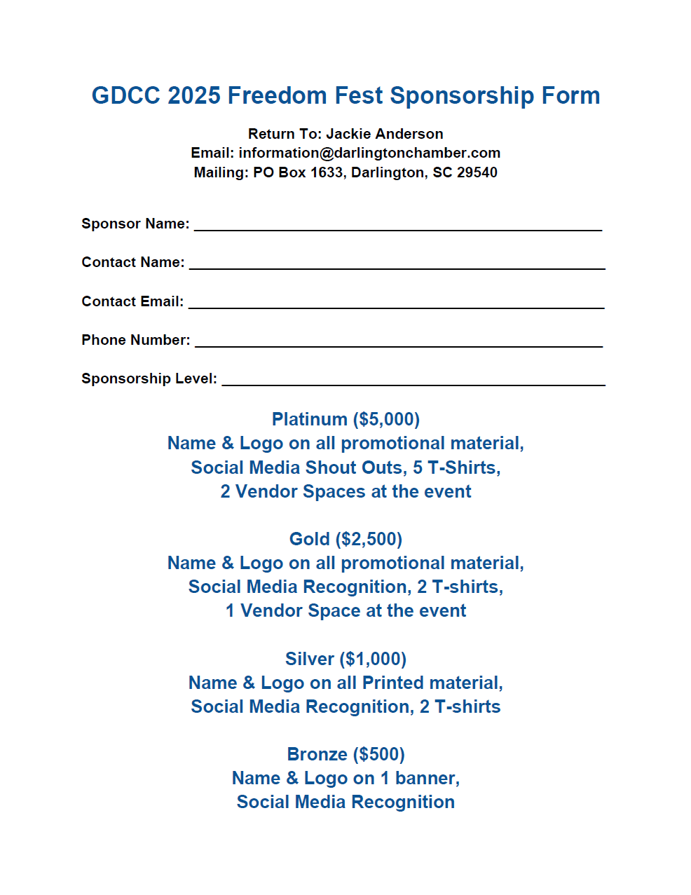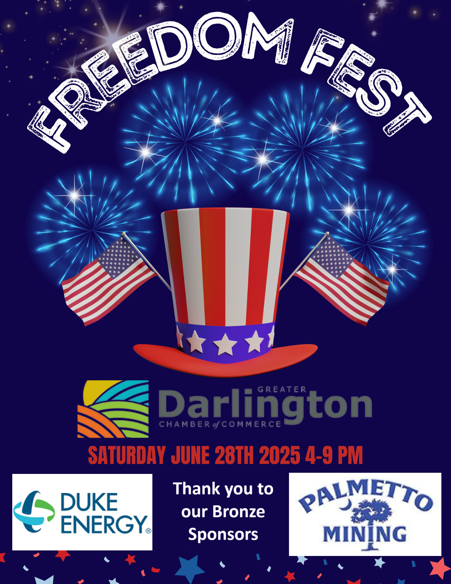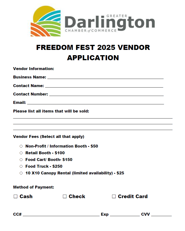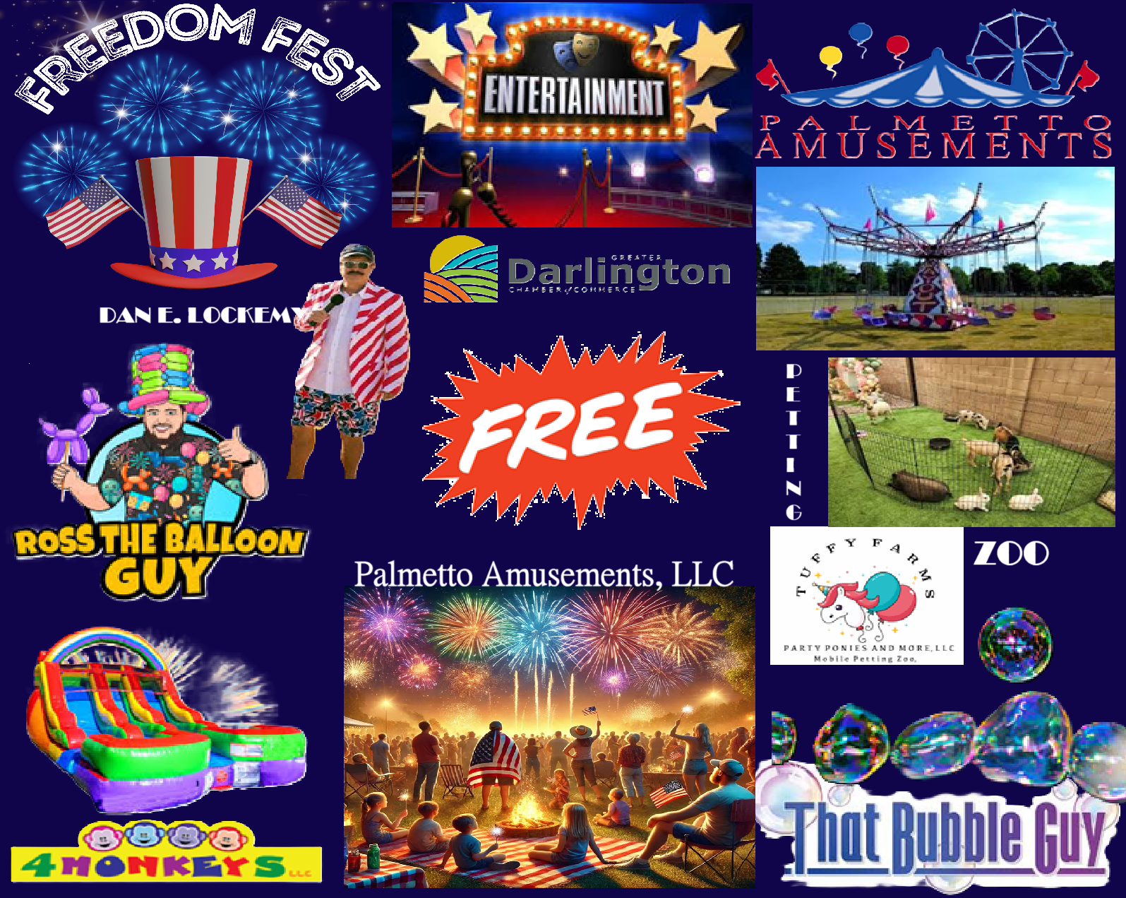 The Greater Darlington Chamber of Commerce is hosting our 12th Annual Freedom Fest event! A large firework show, retail & food vendors, free amusement rides and more!