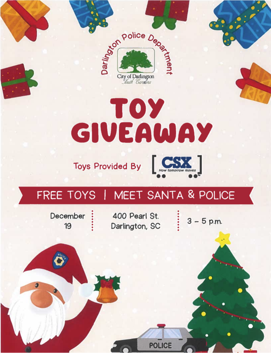 Toy Giveaway with the Darlington City Police Department. Toys provided by CSX.